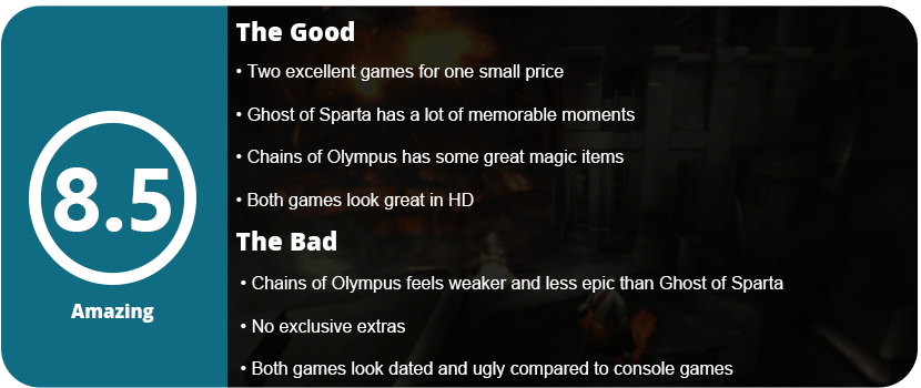 Overall, the entire collection is excellent and well put together. I was disappointed in not seeing any extra features exclusive to this collection, but each game has a Challenge of the Gods that will keep fans busy for a while. With full trophy support for each game, you are bound to have a couple dozen hours of fun here.