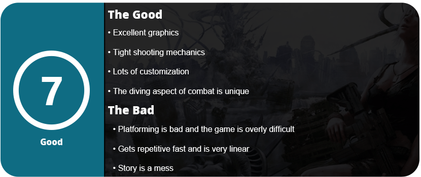 Overall, The 3rd Birthday has a lot of amazing aspects and ideas, but they fall flat because they weren’t fleshed out all the way. The platforming stinks, the game is just too damn hard, and it’s overly linear. The story is an unfocused mess, but at least the game looks amazing and the controls are great. The shooting feels good as well, and there are a lot of customizable features. It just needs more polish, but what’s here is worth a rental or cheap bargain bin price.