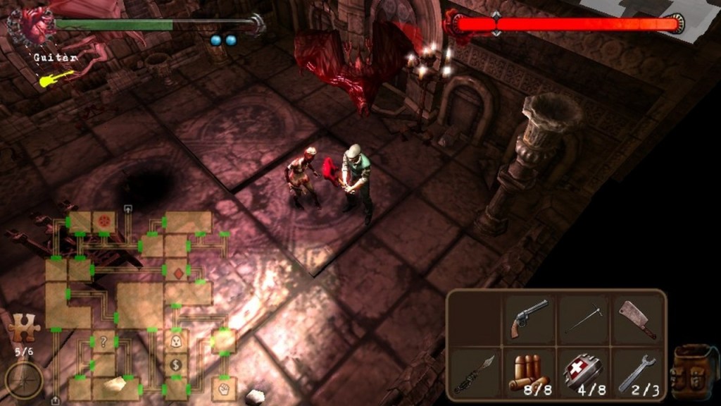 The story is about a crown that has been taken by an ancient dragon. Your job is to return this crown to your kingdom and kill the dragon. The story is very light, and I know there could have been so much more here. But the super short length makes it impossible to write a better story. There are very few cutscenes and not much spoken dialogue (which is only done by a narrator). Once you jump into the game, you can attack, use items, cast spells, and use the right analog stick to move a hand around the screen to collect treasure. You always have a non-fighting thief with you who can pick locks on hidden doors and open chests. Sadly, you can’t change out your equipment during a mission (most levels can be passed in less than 10 minutes). However, at the end of each level is a boss, and they increase in difficulty throughout all 8 levels or so. Each level has two bosses at different levels for various players.