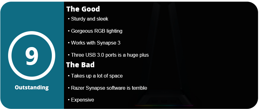 I do have to say it’s probably a little too extra for most PC gamers, but it’s nice for people who love their RGB stuff and want more USB ports. The price is a little hard to justify as it’s the same price as a mid-range mouse or keyboard from them or a new game. This is specifically for a certain audience, and Razer knows it.