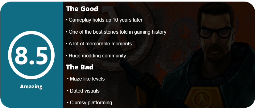 What also makes this game frustrating is not having a map or compass because you can get lost in these hallways with no idea what to do. Your goal or path isn’t always clear sometimes, but HL incorporates a strange navigation system where you climb around on pipes and places that other games won’t let you do. There’s even a frustrating jump mechanic, the crouch jump, that makes platforming very difficult, but fans have grown to somehow love this. The game can also get repetitive after a while because you are just running around shooting enemies with innovative yet boring storytelling. The game is also about atmosphere, but people who are so used to today’s hand-holding in shooters will probably scoff at this.