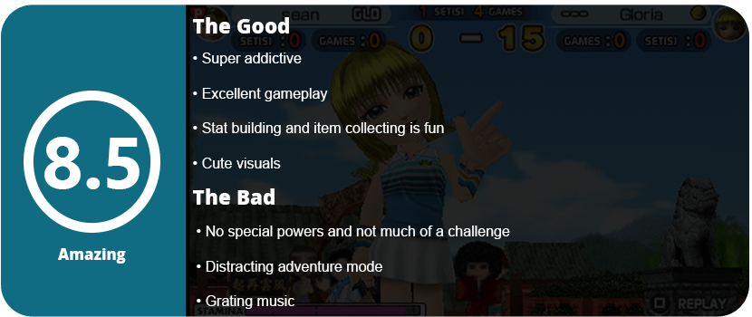 During a match, I felt every player played the same. You serve with a power meter, and I could never figure out where my ball was going. Some sort of reticle on the ground would have been nice. I would smack the ball for 10 minutes, and nothing would happen. It was so hard to trick the AI into doing what you wanted, and it took so long. I wound up losing match after match trying to outbeat the AI; otherwise, I was stuck in an endless volley. The matches themselves, outside of swinging, are boring. There’s no commentary, the characters look horrible, the pros don’t look like their real-life counterparts, and the graphics look about 5–6 years old.