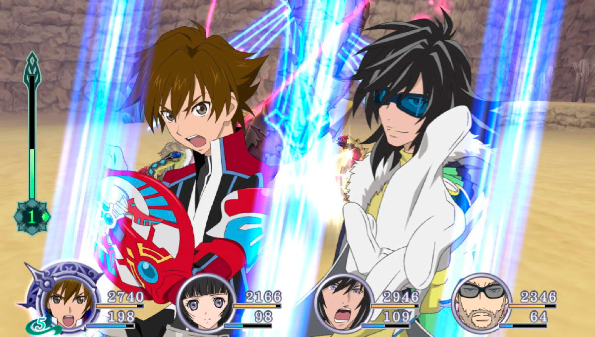 Holy crap… I can’t believe I remember all that! With that said, the story consists of endless cut scenes—I mean, endless. There are probably hundreds of cutscenes in this game, but 90% of them are spoken Japanese dialog, which is nice. There are a few anime cutscenes that are beautiful, but I wish there were more. I know most people like cut scenes, but I honestly felt it held up the game too much, but that’s just personal preference. Aside from the story, the combat is actually pretty intense and deep. You can control four different party members in real-time in an arena. The attack buttons are completely customizable, allowing you to assign new skills and “arts” to Circle and X. While you hack away at enemies, a meter will charge that allows you to go into a “hyperdrive” mode to deal more damage and take less. All while this is going on, you can also assign other members’ skills to the touch screen by flicking their icon, which I thought was a nice touch. I had one party member heal at my beck and call exactly how I wanted him to instead of relying on his AI, which would usually wait until everyone’s HP was in the red.
